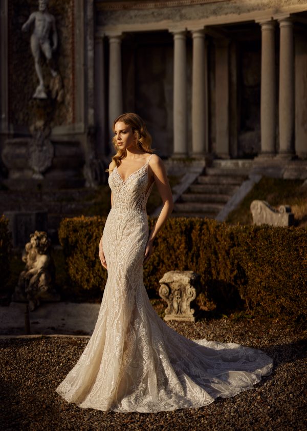 Opulento, atrevido e innegablemente sexy, el modelo presenta seductores detalles transparentes junto con lujosos encajes y tules bordados. Antes 2315€ Ahora 1499€. Randy Fenoli