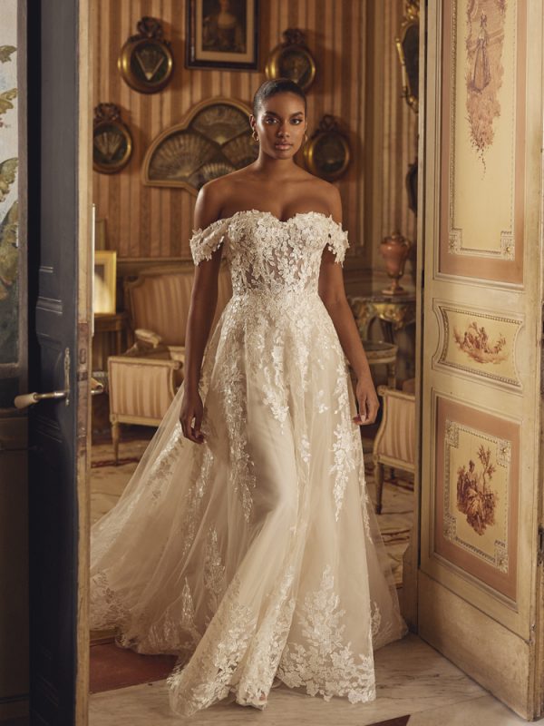 Mangas de novia de encaje desmontable. Encajan perfectamente con el vestido 1299 de encaje y pedrería palabra de honor de Demetrios.